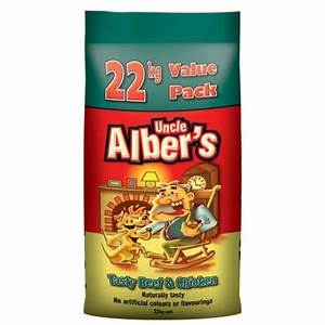 Uncle Albers is a highly nutritious concentrated & high protein dog food. Great for active or working dogs. Uncle Alber's is a complete and balanced diet for your dog. No other foods or supplements are required to be fed apart from clean, freshwater.